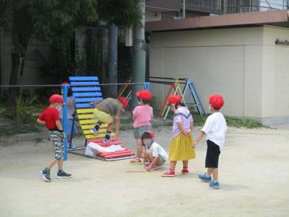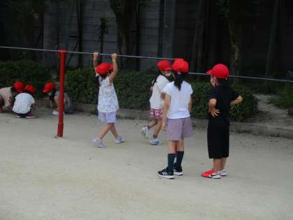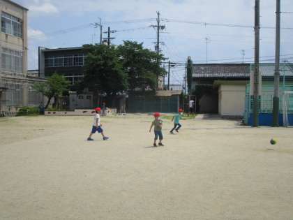 運動場でたくさんの友だちが遊んでいます。ボール遊び,鉄棒,虫探し,おにごっこ。汗をいっぱいかきながらも楽しそうです。