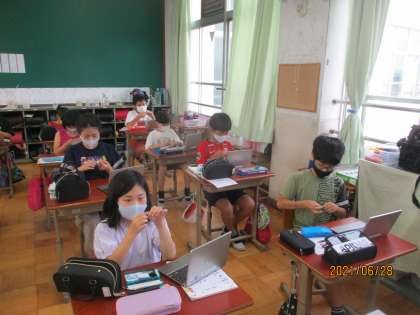玉結びの動画を見ながら取り組んでいます。
