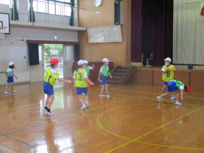 エンドボールの単元の学習に取り組んでいる様子です。
