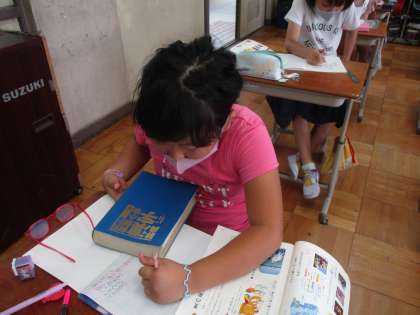 分からない漢字は,漢字辞典を使って調べています。