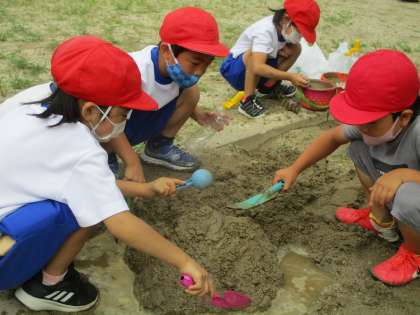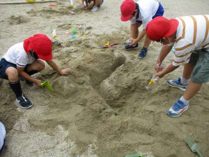 砂と水を使って造形遊びをしました。