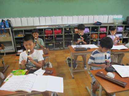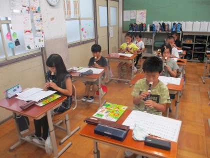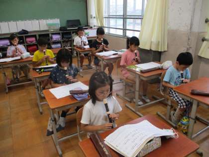 リコーダーの演奏の練習をしている様子です。