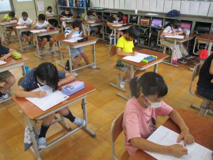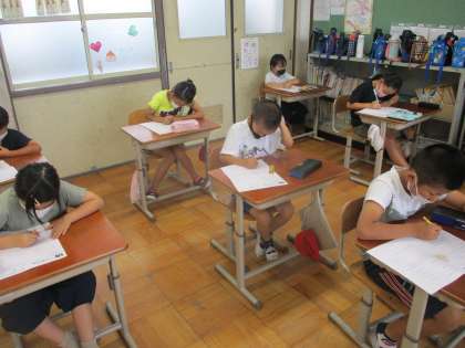 プリントで単元の復習をしている様子です。