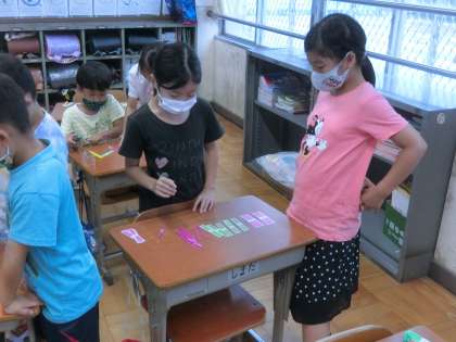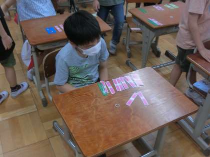 2年生の算数では,100を超える数についての学習をすすめています。数え棒を使って,100を超える数を表しました。友だちが表した数を答えに行けました。