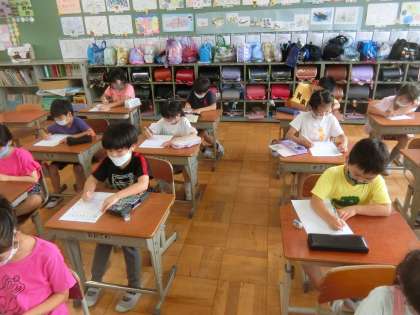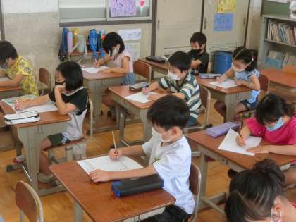 朱桜タイムには,計算練習に取り組んでいます。速く正確に計算できるように,練習しています。