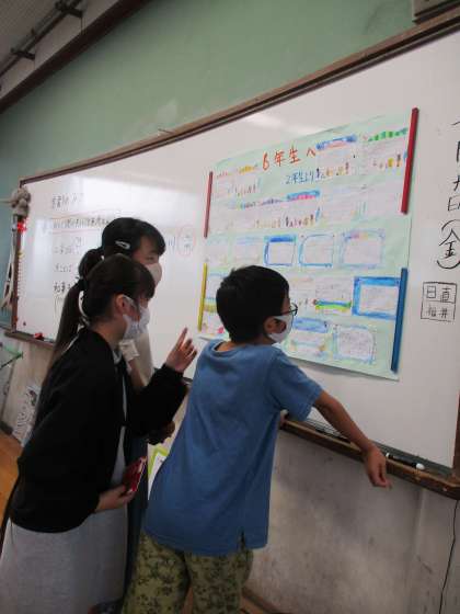 給食時間,2年生がたてわり活動のお礼を伝えにきてくれました。一人ひとり丁寧な字で感想が書かれており,6年生は嬉しそうに読んでいました。次回も頑張ろうという気持ちがわいたようでした。