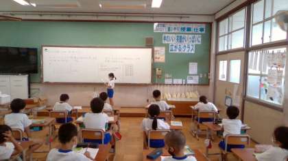 どのような計算になるのかを考え,式や図,言葉で伝えている様子です。