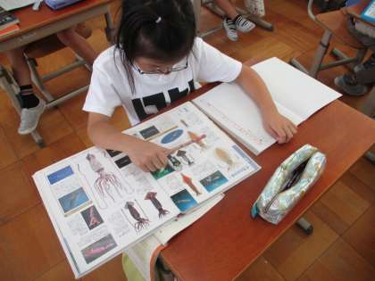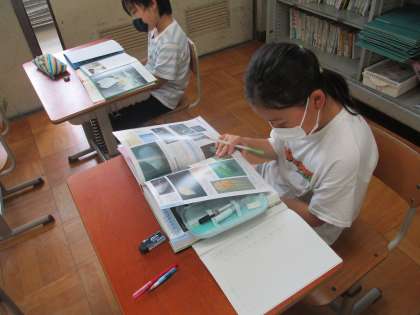 図書室で選んだ本を読んで,初めて知ったことや驚いたこと,不思議に思ったことなどをノートに書いている様子です。