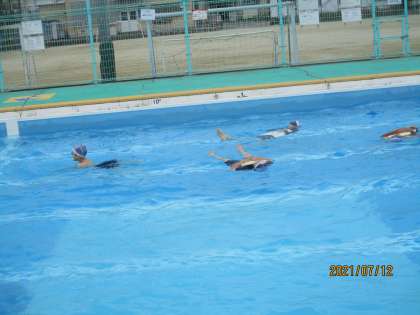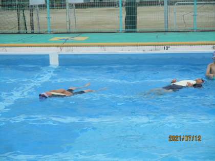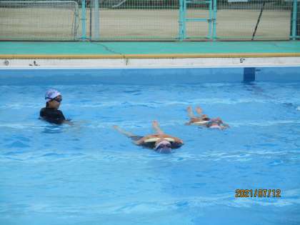 万が一の水難事故に備えて,背浮きの練習などをしています。