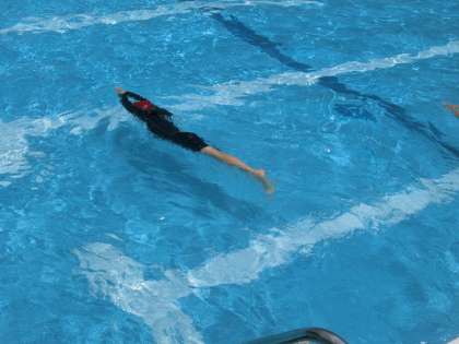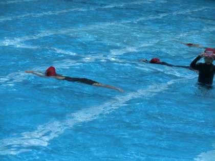 2年生の体育では,水遊びを楽しんでいます。ふし浮きもできるようになってきました。