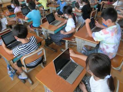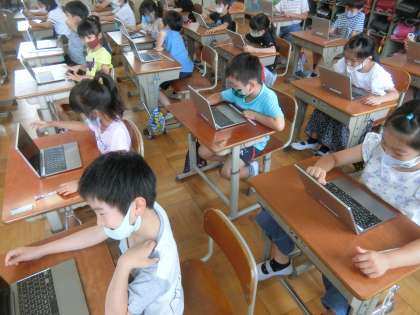2年生の国語では,タブレットを使い漢字の書き取り練習をしました。2年生で学習した漢字を復習しました。