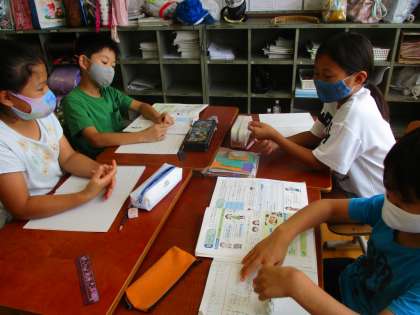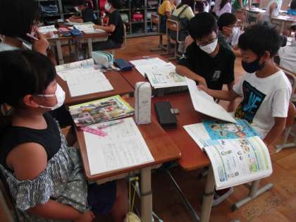 ごみを減らすために自分たちに出来ることを話し合っています。