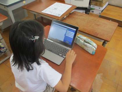 デジタルドリルを使って1学期に学習したことを復習している様子です。