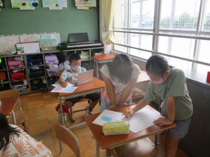 明日のお楽しみ会に向けて各係で打ち合わせをしている様子です。
