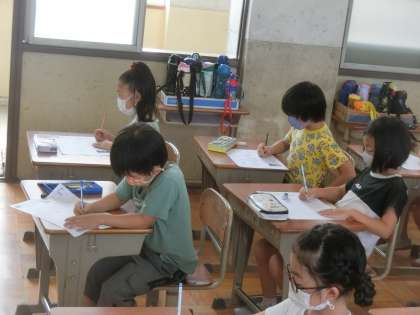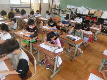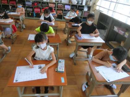 2年生では,さっそく1学期の復習漢字テストを行いました。夏休みに頑張って練習したから,自信があると話している子が多くいました。