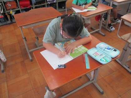 自分の考えをノートに書いている様子です。