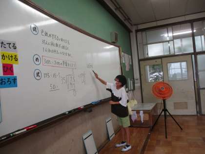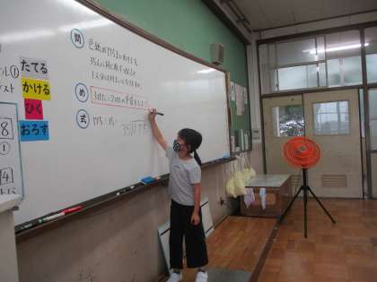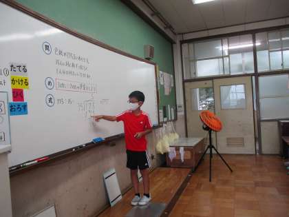 筆算の仕方をみんなの前で発表しています。