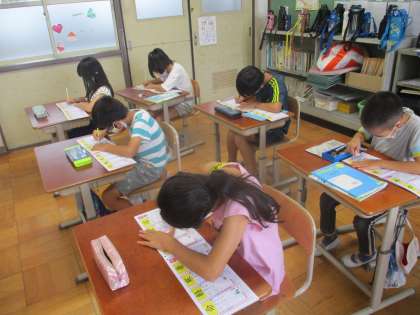 今日も集中して漢字の学習に取り組んでいます。