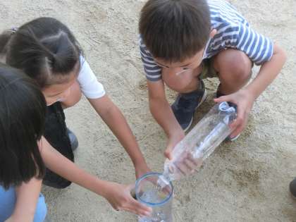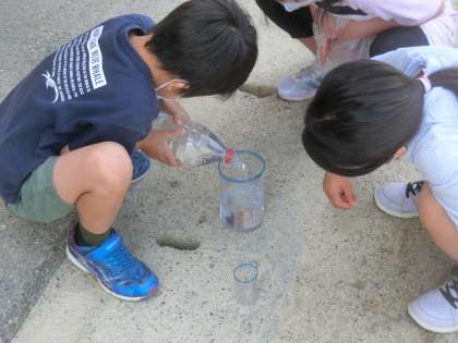 かさの学習の中で,1Lはどのくらいか予想して,はかりました。1Lって少ないんだと話している子もいれば,多いと感じている子もいて,楽しそうに活動しました。