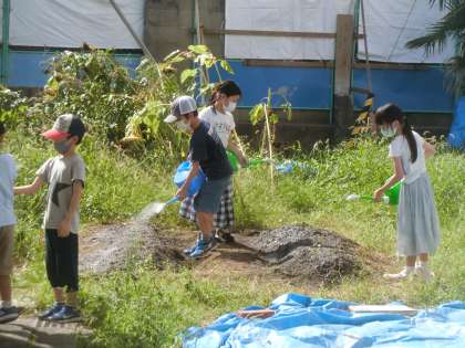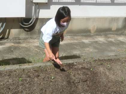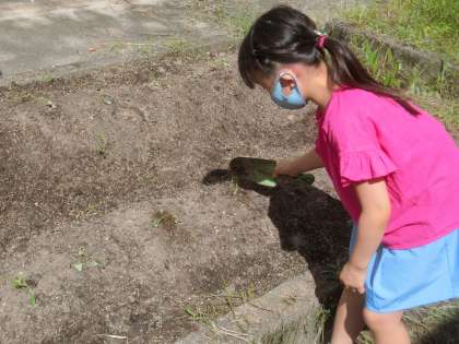 先日植えた,大根の手入れをしました。肥料をまいたり,雑草を抜いたりしました。毎日水やりをがんばっています。