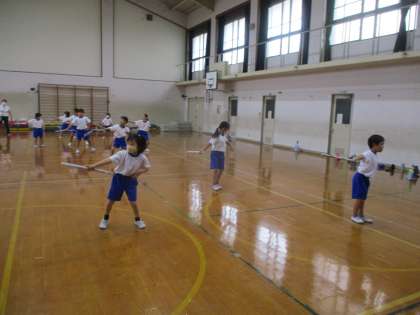 今日もリズムあそびをしました。少し覚えきれていないところもありますが,リズムにのって楽しく踊れるようになってきています。