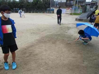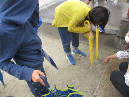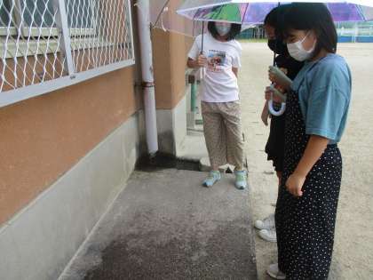 そこで,雨が降っている時の地面の様子を調べに行きました。