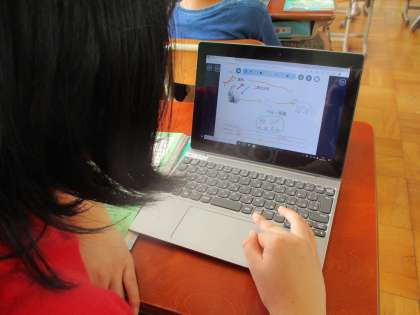 「食べる・食べられる」の観点から学習のまとめをしました。私たちも食物連鎖の一部なんだなぁと感じながら,図や文で考察を進めていました。
