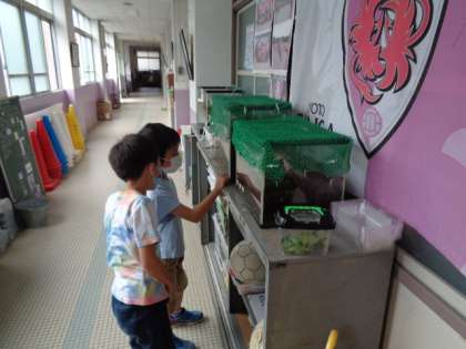 また,となりのカブトムシの幼虫も気になってしまいます。子どもたちの中には,幼虫を見ただけでオスかメスかを見分けられるツワモノもいました。わたしも早速に調べてみたいと思います。興味・関心は知識習得の大切なポイントですね。