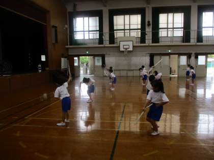 リズムあそびをしました。昨日よりステップを難しくしてみました。できるか心配していましたが,とっても上手にできてびっくりしました。
