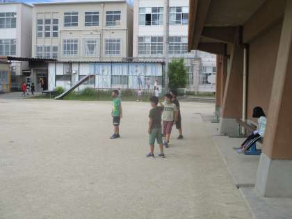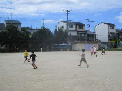 元気にグラウンドで遊んでいます。