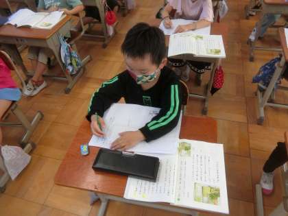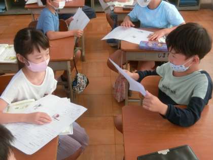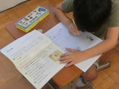 挿絵を見て,登場人物の様子を想像しました。挿絵を見比べることで,気持ちの変化に気付くことができました。
