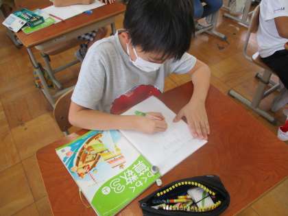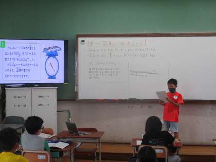 自分の考えを伝えたり,ノートにかいたりしている様子です。