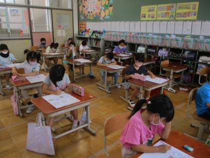 「なんじ・なんじはん」のテストをしました。ですが,「とけいわからない!!」という声が多かったので,復習をしてからテストをしました。長いはりが12と6のどちらをさしているのかな?みじかいはりはどこにあるのかな?と丁寧に確認していました。