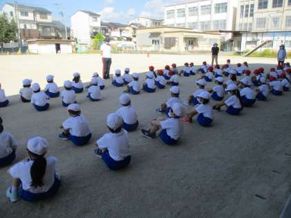 今日から1・2年生合同での練習を始めました。今日は,アンダー・ザ・シーのダンスの移動の練習をしました。1年生は,2年生に間に入ってもらっていることが多く,2年生の動きを見て動いていました。2年生は,自分の場所をしっかり分かっていて1年生をリードしてくれています。