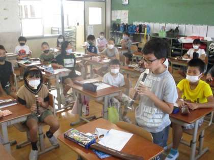 タンギングや息づかい,吹く時の姿勢に気をつけて演奏しました。