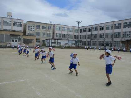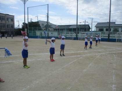 今日はダンスの練習です。1,2年生がちがう動きをするところを確認してから踊りました。すてきな笑顔で踊れるといいな。