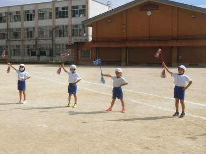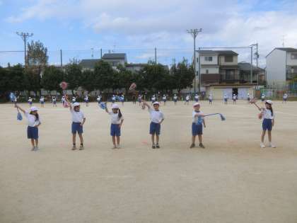 動きをおおきくする,ピタっと止まるところは,止まる,にこにこ笑顔でおどるという3つのめあてをもって,今日は練習しました。さいごはみんな,そろって笑顔で終わりました。