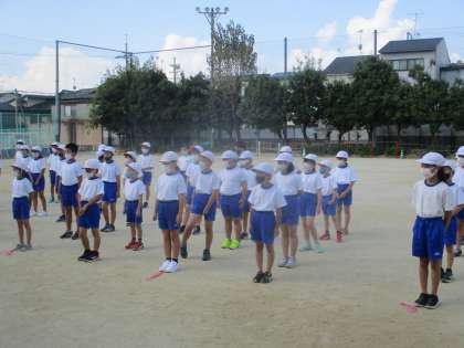 体育科学習参観の開会式や「ソーラン節」の練習を行っている様子です。