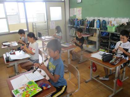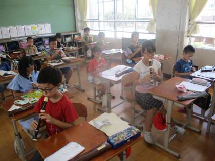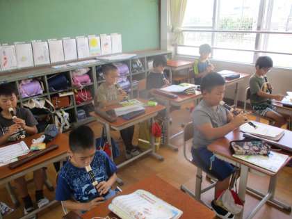 曲のかんじをいかしてリコーダーの演奏をする練習をしている様子です。