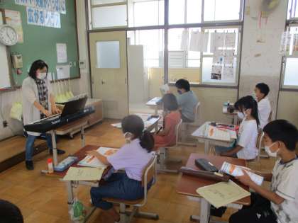 歌詞の表す様子を思いうかべながら「帰り道」を歌っている様子です。