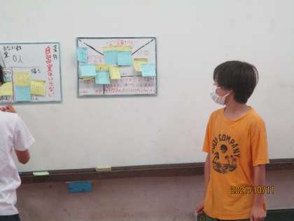 班の代表として全体に伝えています。
