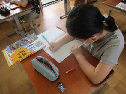 今までに学習したことを思い出しながら予想をノートに書いています。
