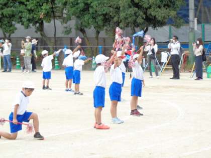 ダンス「アンダー・ザ・シー」です。キラキラのバトンが輝きました。これまでたくさん練習した成果が発揮できたように思います。子どもたちの笑顔があふれました。