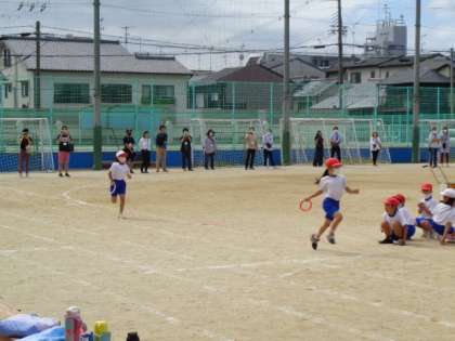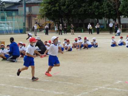 1・2年生全員でリレーをしました。力いっぱい走り,バトンをつなぎました。応援も一生懸命でした。