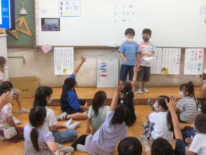 係活動主催のお楽しみ会をしました。工夫した遊びを4つしました。特に盛り上がったのは,アーノルド・ローベルさんのお話をしっかり読み込んでいないと答えられないクイズ大会です。教科書にのっている「お手紙」だけでなく,たくさんのお話からランダムに出題されました。