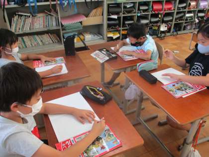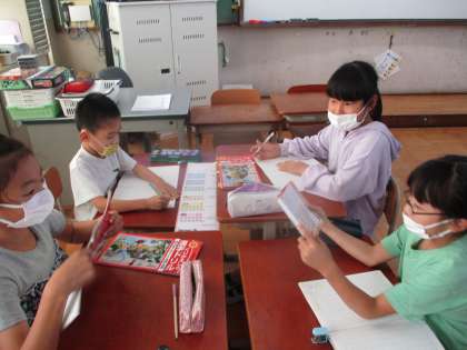 明日の漢字のまとめテストにむけて班のみんなで復習をしている様子です。