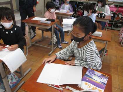隣の人とどのように考えたのか交流しています。