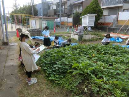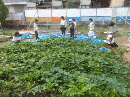 サツマイモの観察をしました。葉の葉脈の様子まで,詳しくカードに記録する子が多くいました。