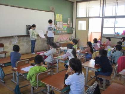 朝,図書委員さんが来てくれました。再来週から『シルバー読書週間』が始まり,読み聞かせに来てくれるお知らせでした。どんな本を読んでくれるのか楽しみです。
