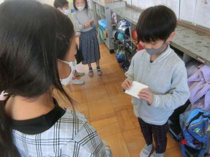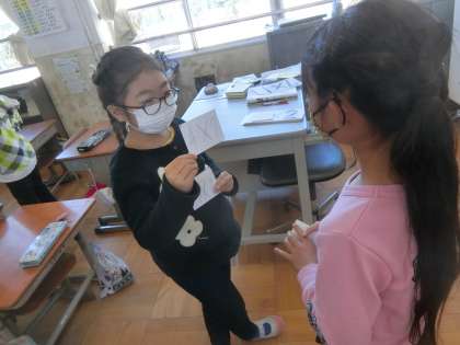 2の段から5の段まで全員が覚えることができました。今日は九九カードを作成し,友だちと問題を出し合いました。